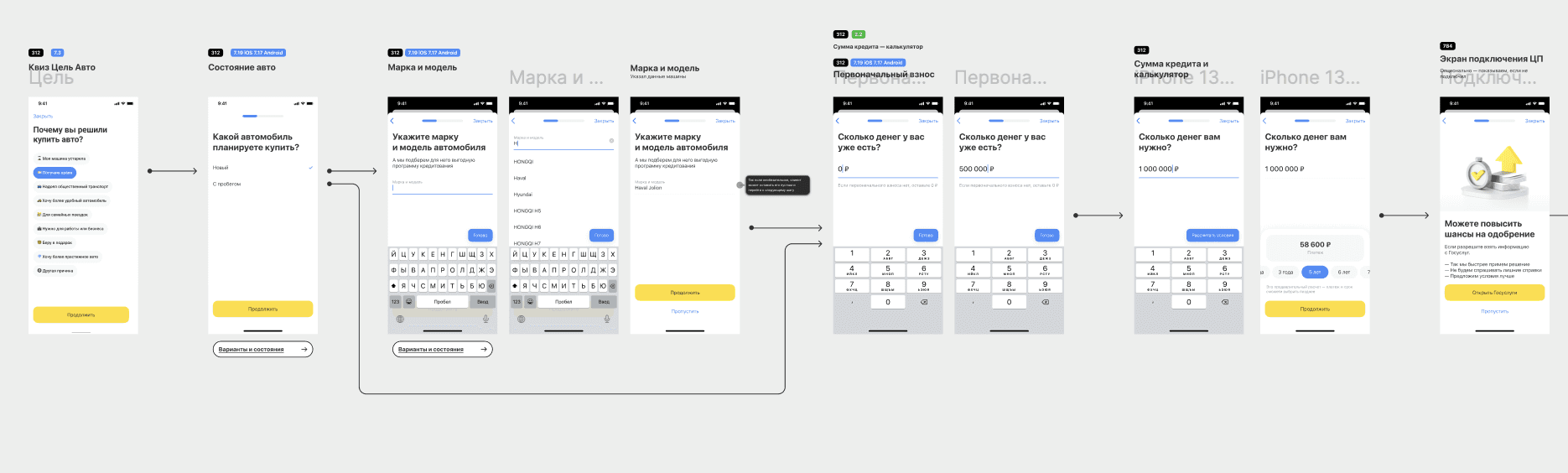 Проанализировала текущий флоу и выявила точки потери внимания пользователей. Убрала дублирующиеся параметры, интегрировала новые поля в логику и спроектировала экран ожидания скоринга. Работала в рамках дизайн-системы Supreme и ограничений WebView
